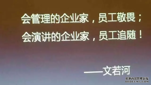 “会管理的企业家,员工敬畏;会演讲的企业家,员工追随。”这是文若河老师急于告诉企业家们核心的观点,也是讲台上、工作中的马云、任正非、雷军、董明珠们传递出的最明确信息。智慧的企业家们,自然知道该做什么!